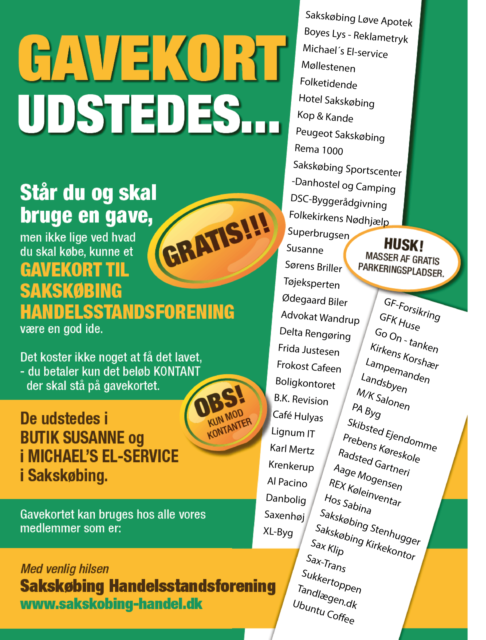 Sakskøbing er en lille hyggelig handelsby med flere specialforretninger som sørger for at kunderne føler sig hjemme og får den bedste betjening og service.